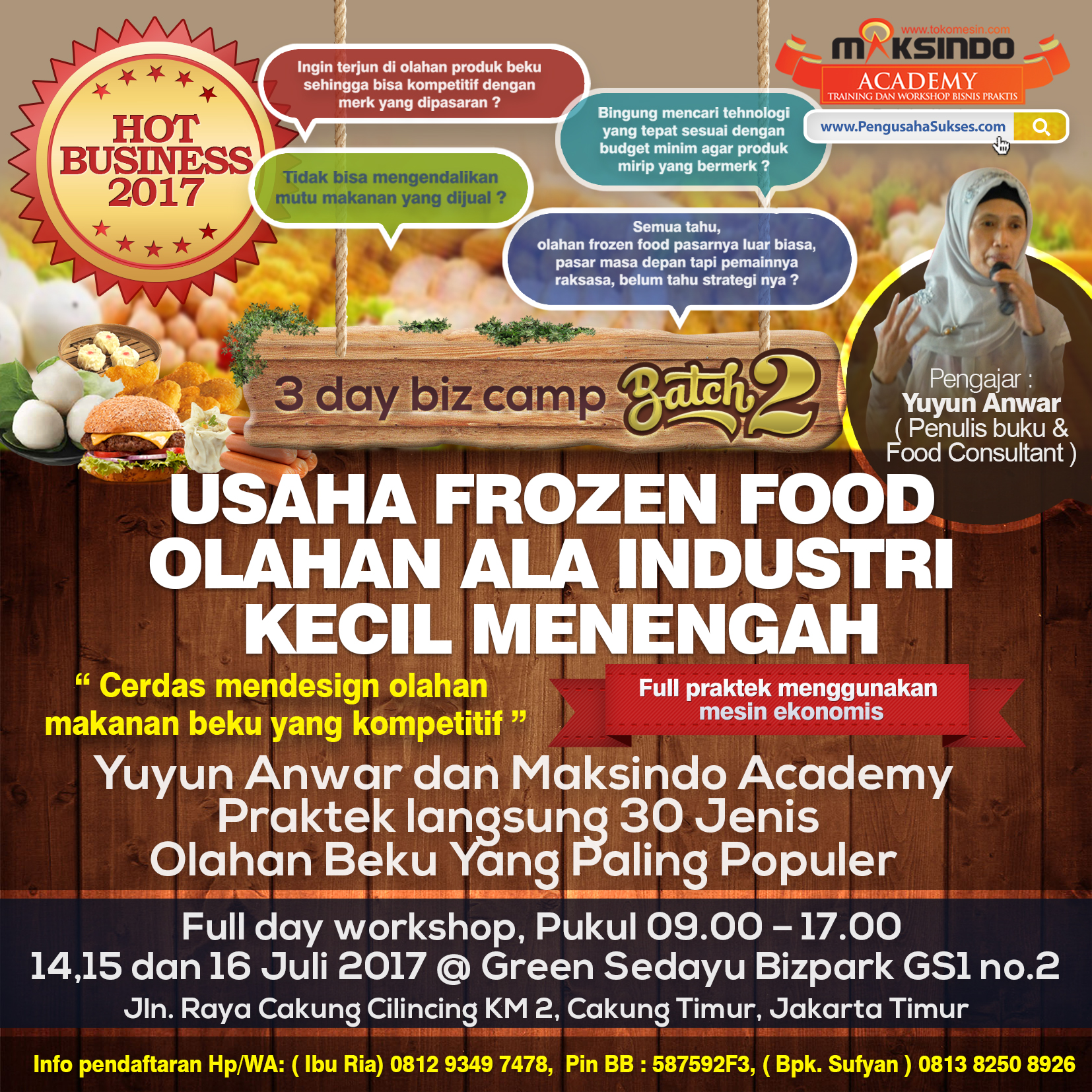 14, 15 dan 16 Juli 2017 @ Green Sedayu Bizpark GS1 no.2 – Jln. Raya Cakung Cilincing KM 2, Cakung Timur, Jakarta Timur
